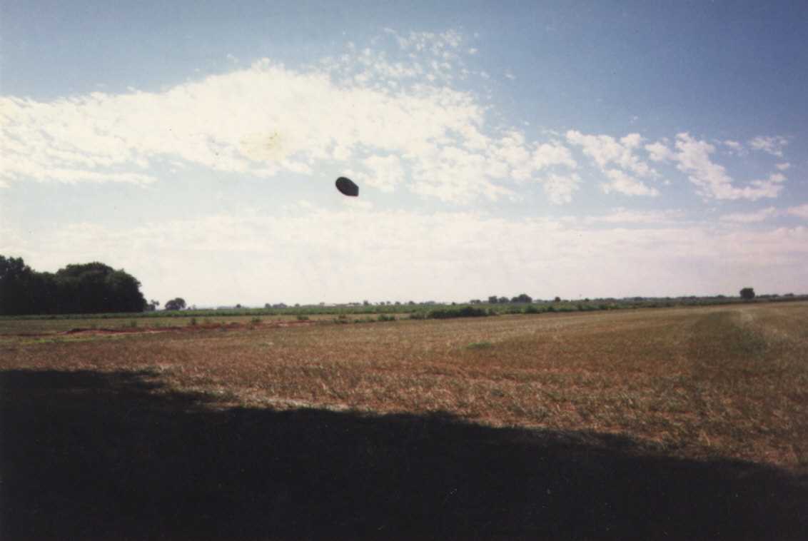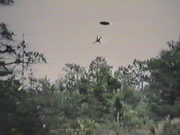 moving around quickly. The white farm buildings are clearly seen in his videotape of the mylar object.