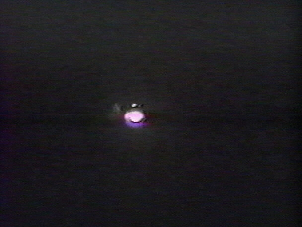 here the UFO say "ouch". Then you here a chuckle from the cameraman quickly, silence, then it appears the cameraman